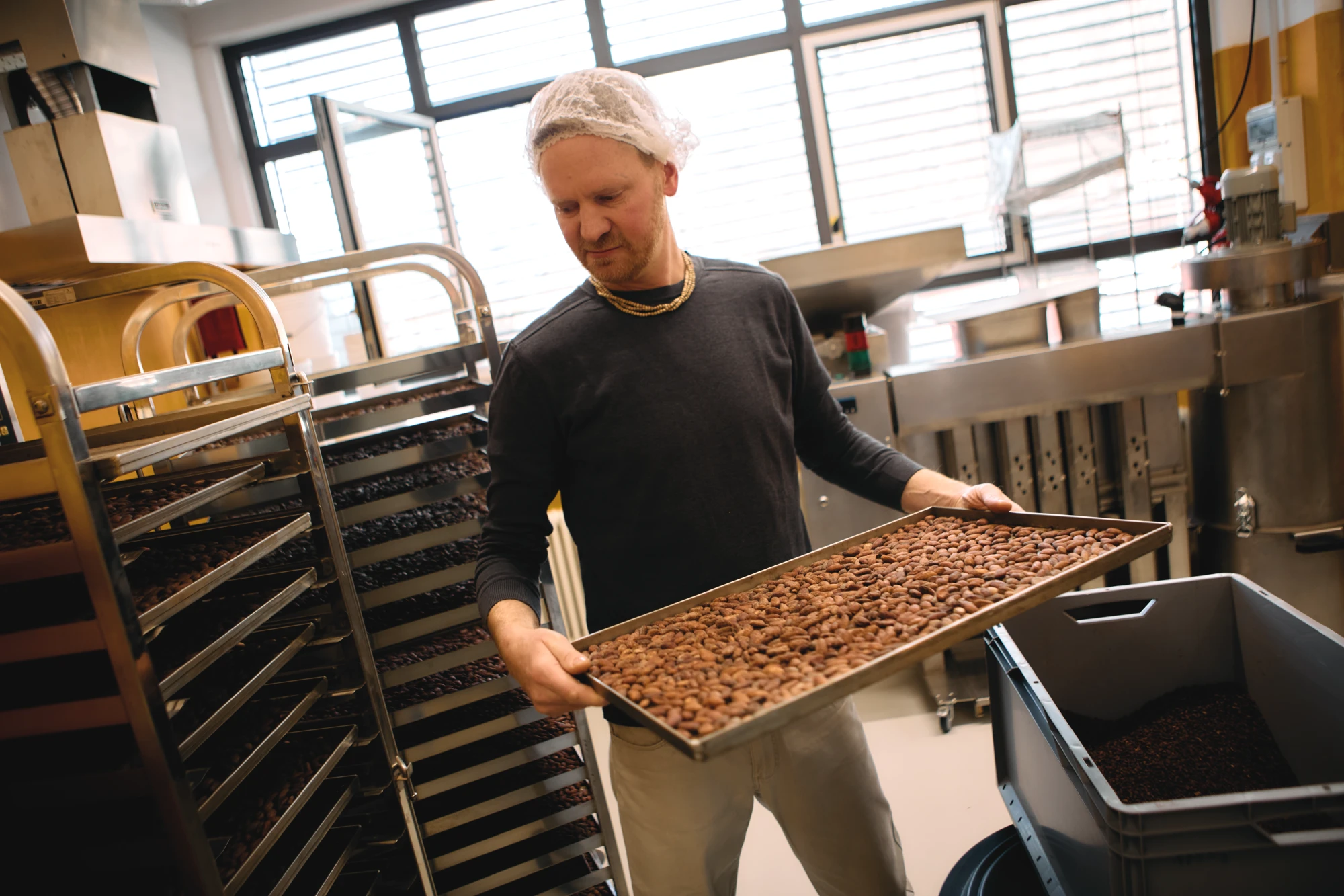 Dall’analisi del sacco di juta alla tostatura personalizzata, fino al modellaggio della tavoletta, l’intera lavorazione è fatta artigianalmente e controllata personalmente da Armin in azienda , garantendo purezza che il cioccolato commerciale non può conoscere.