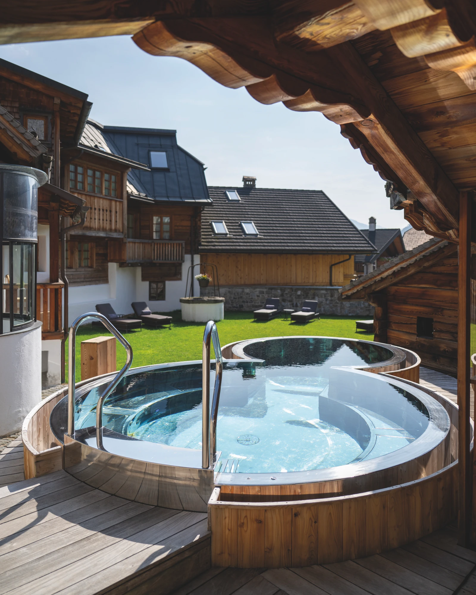 Il complesso si estende su cinquemila metri quadri nel cuore di Malborghetto. L’edificio principale, sviluppato su quattro piani collegati da un ascensore che sale dalla hall con check-in personalizzato, ospita le prime suite. A dominare l’intero complesso si erge una torre fiabesca che sale per ulteriori tre livelli. Due strutture indipendenti completano l’offerta: il Wintergarden, con sette camere, e lo Chalet, con otto, entrambi immersi in un giardino comune dove natura e architettura dialogano in perfetta armonia.