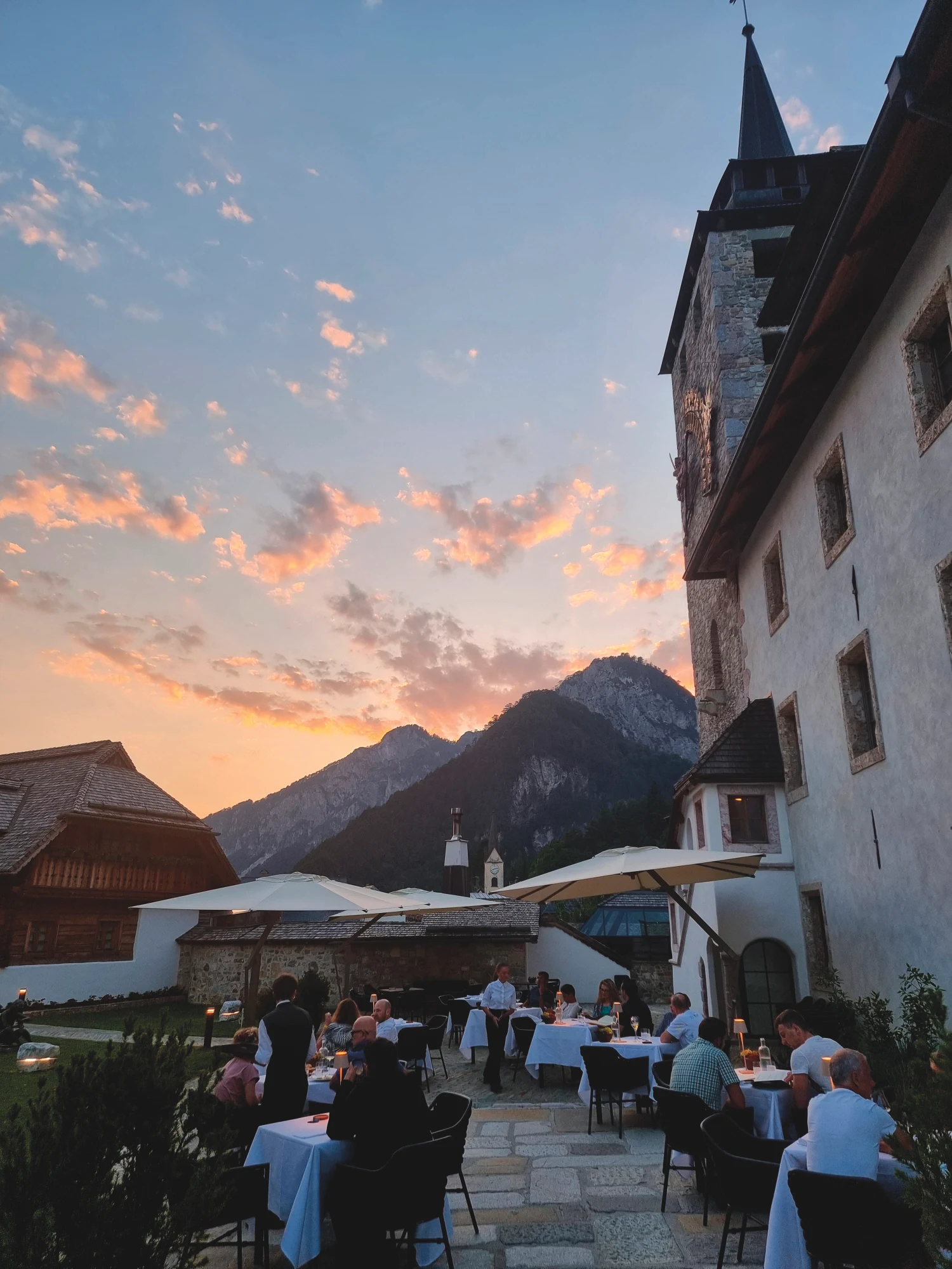 Ma è la SPA a rappresentare forse il cuore pulsante di questa esperienza. Quasi mille metri quadri articolati su più livelli e integrati nel corpo storico dell’hotel, un vero tempio del benessere che si distingue per l’ampiezza dell’offerta: due saune, di cui una alimentata a legna, bagno turco con cromoterapia, docce emozionali, vasca fredda, cascata di ghiaccio, biobar con tisane alle erbe, quattro cabine per trattamenti olistici, una sala meditazione con un imponente camino quattrocentesco e la caratteristica piccola farmacia letteraria. All’esterno, il wellness garden ospita una piscina Jacuzzi in acciaio che riflette la maestosità della valle. I trattamenti spaziano dai massaggi ayurvedici e thai ai percorsi antistress, dal detox all’anti-age, fino alla meditazione e allo yoga.